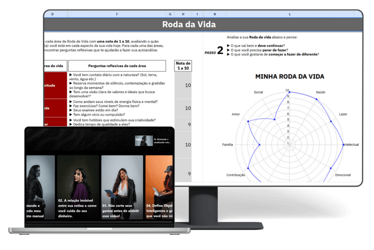 👉 Com suporte em vídeo, você aprende a preencher e transformar essa visão em objetivos claros, melhorando sua vida pessoal e sua organização financeira.